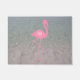 A doormat featuring an illustration of a pink flamingo over a background photo of ocean water. Personalise the monogram.