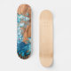 This skateboard has a unique exploding wave made from original artwork. The wave colours are white navy and teal. They are styled upon a wood accent background. The board is customisable. It is a great gift idea for anyone who likes to shred it.