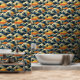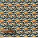 Dominating the horizon is the striking orange sun, gracefully descending amidst the waves. Its vibrant colour radiates warmth and tranquillity against the cool blues of the ocean, adding a dramatic contrast and focal point to the pattern. The sun's placement and size are carefully balanced to enhance the overall composition and evoke a sense of peaceful harmony.