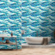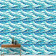 Ideal for any beachy establishment; coastal island restaurant; seaside hotels; lodges; resorts and chalets, this dark and turquoise blue mixed with white mural features horiozontal rolling waves and small white horses flowing from left to right. Bring the beach indoors, with this modern, contemporary and elegant seamless pattern that is easy to peel and stick to both smooth and textured walls.