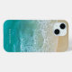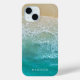 Pretty and trendy beach themed monogram iPhone 15 case with a tropical photograph of ocean waves on a sandy beach with the name of your choice. Perfect case for all the mermaid beach lovers out there.
