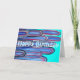 Birthday card in retro 1960s style, perfect for a surfer or beach and ocean lover - a print design from original hand drawn and painted art. This blue, purple and turquoise curving, wave like pattern is a graphic art doodle that was inspired by the gentle waves of the ocean lapping against the shore. Perfect cool colors for Summer.
