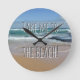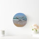 Bring tranquillity to your home with this decorative beach-inspired wall clock, featuring a photograph of rolling aqua blue ocean waves and golden sand. The words, "Take me to the beach" is in stylish, coastal white and black text. Customise this clock by choosing from other sizes or the option of grey hands.