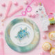 Sweet personalised plates for your tropical sea turtle themed backyard baby shower. This design features an ocean waves border with a watercolor sea turtle. Personalise with the mama-to-be's name and shower date. To see the matching beach theme aloha party decor visit www.zazzle.com/dotellabelle