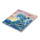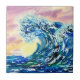 watercolor artwork of big blue ocean waves under a colourful evening sky in purple colours on a ceramic tile.