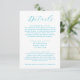 Ensure your guests have all the essential information with this elegant aqua blue Ocean Waves wedding details card. Perfect for beach weddings, this enclosure card includes accommodations, transportation, and hotel details to make travel planning easy. A QR code on the back links to your wedding website for more information. Ideal for celebrations at The Ritz-Carlton, Amelia Island; Casa Marina, Key West; The Cloister, Sea Island; The Ocean House, Rhode Island; Montage Laguna Beach; The Don CeSar, St. Pete Beach; and Kiawah Island Resort. Designed by Concertina Press.