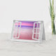 Open white window with purple and pink ocean sunrise scene for sympathy