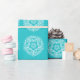 This white mandala sits on a turquoise background. The colours are very calming and peaceful. Part of the Jarn Mandala Collection.