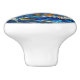 A ceramic knobs with an illustration of a stained glass mosaic ocean waves and sunset illustration. These are perfect for a beach themed coastal birthday party.