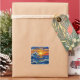 A sticker with an illustration of a stained glass mosaic ocean waves and sunset illustration.
