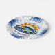 Boy's birthday party in a nautical or maritime theme paper plates. A pop art ocean wave in blue and orange. Add child's name in the personalize area.