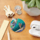 A keychain that features a nautical drawing of a school of large fish swimming past a mermaid on a swing.