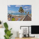 Oceanside California. View of the beach with tall palm trees, the wooden pier, and the Pacific Ocean.