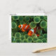 Animal card showing a cute pair of ocellaris clownfishe. The ocellaris clownfish (Amphiprion ocellaris), also known as the false percula clownfish or common clownfish, , is a marine fish belonging to the family Pomacentridae. Amphiprion ocellaris are known to grow about 110 mm long. Like many other fish species, females are, however, larger than males. The life cycle of Amphiprion ocellaris varies in whether they reside at the surface or bottom of the ocean. When they initially hatch, they reside near the surface. However, when Amphiprion ocellaris enters into the juvenile stage of life, they travel down to the bottom to find shelter from a host anemone. Once they find their anemone, they form a symbiotic relationship with them.
