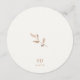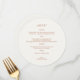 This circular menu card template features a set of contemporary fonts in ochre, against a chic ivory background. The back of the card includes couple initials and lovely delicate foliage detail.