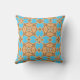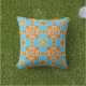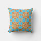 Vibrant modern outdoor pillow design featuring a seamless pattern made of geometric shapes in ochre brown and turquoise.