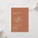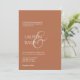 Minimalist & chic. This elegant and simple wedding invitation features a lovely set of contemporary fonts and script accent. The front of the card includes a combination of trendy ochre terracotta colours. Couple names are repeated at the back in ochre, against a creamy ivory background.