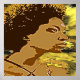 this is a painting rendition by artist Liz Loz of Afro Cuban Santeria orisha Ochun. The beautiful facial lines of the Afro woman are set over petals of sunflowers as the orisha enjoys this flower the most