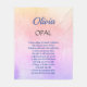Stylish personalised October birthstone, Opal Poem design Fleece Blanket gift. Poem describes the metaphysical properties of the Opal.