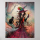 October Flame Witch and Cat Art by Molly Harrison Poster