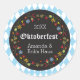These customisable Octoberfest (Oktoberfest) stickers feature the text "Oktoberfest" in a festive Bavarian style font as well as an embroidered floral background to match my customisable Octoberfest party invitations.