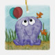 Cute purple octopus is being kissed on the cheek by two goldfish and looking pretty loved. Lovely underwater scene to brighten your day.