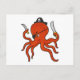Octopus as Pirate with Sword & Knife Postcard