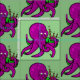 A playful purple octopus blowing on a set of green bagpipes. A funny image for lovers of octopi and bagpipes (pretty much everyone).