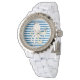 Bright blue and white horizontal stripe watch with a nautical ocean theme, features a cute octopus wearing a sailor hat!