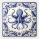 coastal sicilian ceramic tile,italian hand painted pattern,mediterranean nautical portuguese octopus,blue and white marine life,summer ocean sea squid,beach house seafood portugal,authentic classic traditional painting,vintage tentacles antique coast,folk art spanish mexican talavera,monochrome monochromatic decorative animal