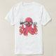 A cheerful octopus mascot wearing glasses and holding a camera, notepad, speech bubble, and magnifying glass in its tentacles. The design promotes visual interpreting and disability inclusion with a fun and accessible style, perfect for an equity and access fashion statement. for shirts.