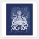 Octopus On Blue Square Sticker