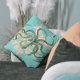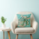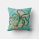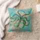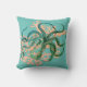 Aqua background, watercolor coral branch and a green tinted vintage octopus illustration gives this throw pillow a modern look.
