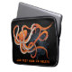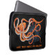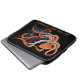 An orange octopus against a backdrop of black. Octopus tentacles in and around bubbles and a blue mandala