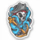 A skull adorned with a classic pirate hat is depicted with octopus tentacles wrapped around its face. The octopus's tentacles are a vibrant blue, while the skull is rendered in a detailed, graphic style with stark black and white contrasts. The background is a simple grey, allowing the image to focus on the intricate details of the skull and octopus. An anchor, a symbol of hope and stability, is positioned behind the skull, adding a touch of irony to the overall composition.