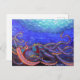Original painting of a colourful underwater octopus gliding across the ocean floor.