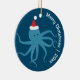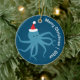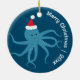 A fun Christmas ornament showing a smiling octopus in a Santa hat on a blue background. This cute ornament has the words ‘Merry Christmas’ and a customizable year.