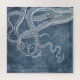 Twilight Blue and Faded Denim Blue Watercolor with White Vintage Octopus Illustration from the 1800s. Distressed watercolor collaged with 19th century octopus illustration in white, denim, midnight blue, twilight blue, classic blue and navy tones. Watercolor art print of sea life. This ocean blue art print featuring the intelligent and curious octopus is perfect for beach decor, tropical wall art, coastal decor, beach themed homes, and seaside cottages.