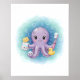 Add ocean fun with this smiling purple octopus kids bathroom wall art holding soap, towel, and rubber duck.