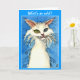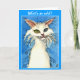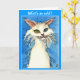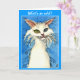 Odd-eyed white cat on blue greeting card