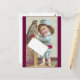 A Victorian fellow on a rooftop attaches a love letter to a carrier pigeon for his lady love in this scrapbook card from 1881.