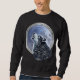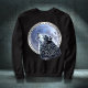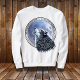 Inspired by Nordic mythological tradition, this design reminds us of Odin's two wolves Geri and Freki. The wolf howling under a blue moon, surrounded by a circle of Nordic runes and mystical symbols. Illustration in a graphic style with cool tones, metallic details, and a palette of blues and grays. Symbol of intuition, freedom, and connection to the ancestral. Ideal for men who walk with silence, strength, and a sense of purpose.