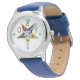 Great price point! Grandson loved his "own name" watch. Great for teaching time! Crisp clear picture! Sturdy leather band. Totally well made product.