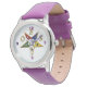The watch looks exactly as depicted. I was especially pleased with the watch band, which is a nice quality, supple leather. I point this out because an option, which was sold out, was with a multi-colored but clearly plastic band. This is the better choice, in my view.
