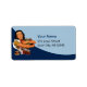 Woman wearing a ruffled apron holding glass jars of vegetables. Custom background and banner colour. Custom text fields for name and address.