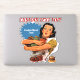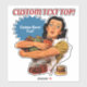 Woman wearing a ruffled apron holding glass jars of vegetables. Custom background colour. Top custom text. Customisable or removable burst bubble with custom text.