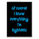 Humourous 18th birthday design that states the obvious "Of course I know everything I'm 18" or at least what every 18 year old thinks. Makes a great 18th birthday gift.