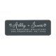 Off-Black heart script couple return address label featuring playful hand-drawn white hearts and a charming, flowing script font for couple names. Set on a soft black background, this long rectangular label adds a warm, personal touch to wedding mail, save the dates, thank you cards, or everyday envelopes. The modern handwritten script pairs beautifully with clean, easy-to-read address text, making this label both stylish and practical. Fully customizable with your names and return address.
