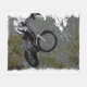 This experienced motocross racer is flying through the trees at top speed in a tight race to the finish line. Great for motocross fans of all ages! Great for Kids and Sports people of all ages.