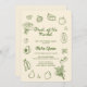 Celebrate love and new beginnings with our delightful "Off The Market" bridal shower invitation, inspired by the charm and vibrancy of a farmers market. This unique invitation sets the perfect tone for a joyous gathering, featuring green hand-drawn icons of fresh fruits, crisp vegetables, and beautiful flower bouquets. Each illustration bursts with a fresh avocado green, bringing life and warmth to an elegant ecru background.